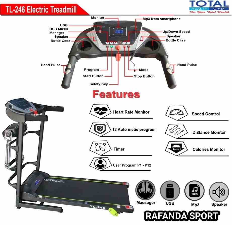 Published Agustus 21, 2020 at 922 × 897 in Treadmill Elektrik 3 Fungsi TL-246 New Mesin 1.5Hp Total Fitness