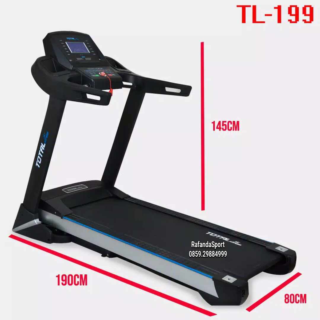 Big treadmill elektrik TL-199 mesin 3Hp. Treadmill TL-199 merupakan treadmill semi commercial , treadmill ini di peruntukan hanya untuk lari/jalan/jogging. Dengan Running area yang cukup luas, Future Monitor lengkap. Treadmill ini sudah pasti menggunakan sistem hidrolik bisa di lipat dan sudah menggunakan incline otomatis.
